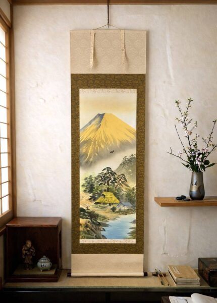 Japanese Hanging Scroll – Mount Fuji Landscape